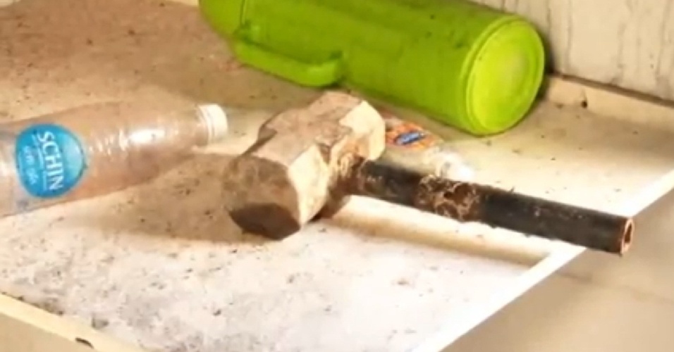 Foto 20 de 28 - 16.abr.2012- Martelo que possivelmente o trio Jorge Negromonte, 50, Isabel Cristina, 51, e Bruna Cristina de Oliveira, 25, teriam usado para matar, esquartejar e praticar canibalismo com ao menos duas mulheres em Garanhuns (PE)