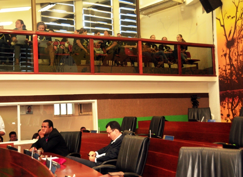 Durante toda a manhã os vereadores permaneceram no local e suspenderam os trabalhos por três vezes, no intuito de dar mais tempo ao Executivo, mas ao perceberem que nada seria feito, decidiram prosseguir com os trabalhos. No plenário estavam apenas o vereador Lúdio Cabral(PT) e Domingos Sàvio(PMDB)